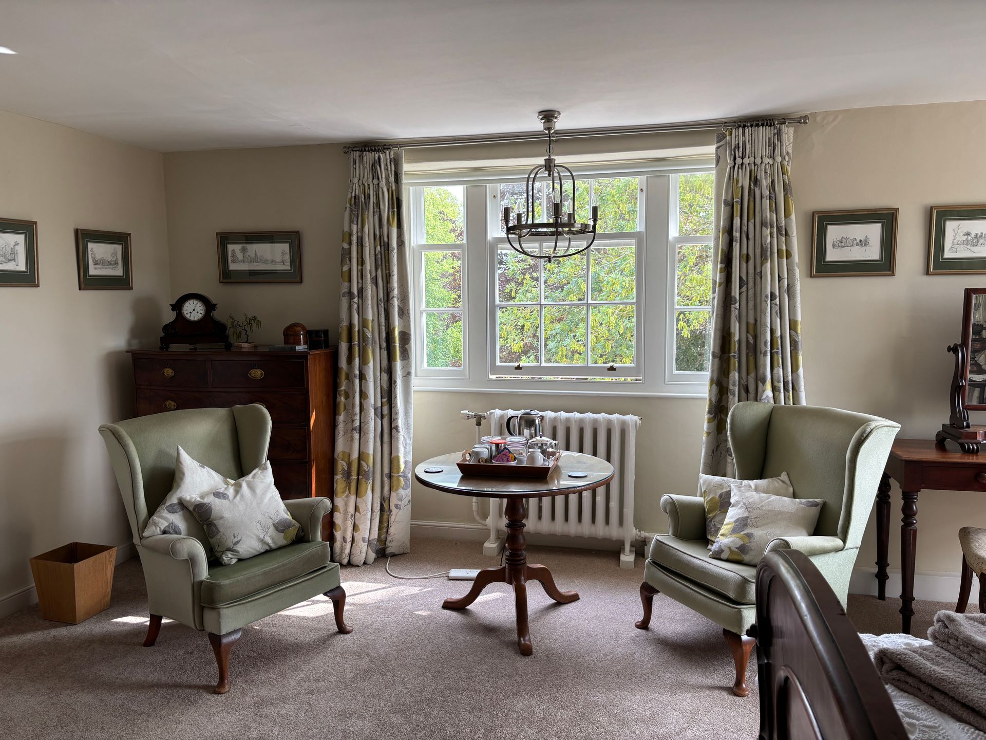 There are coffee and tea making facilities in the rooms and armchairs in which to relax after your day.